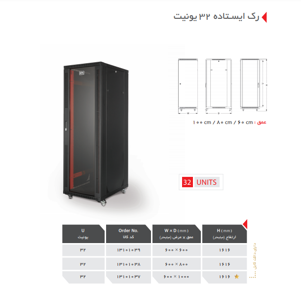 مشخصات رک 32 یونیت عمق 100( سروری)